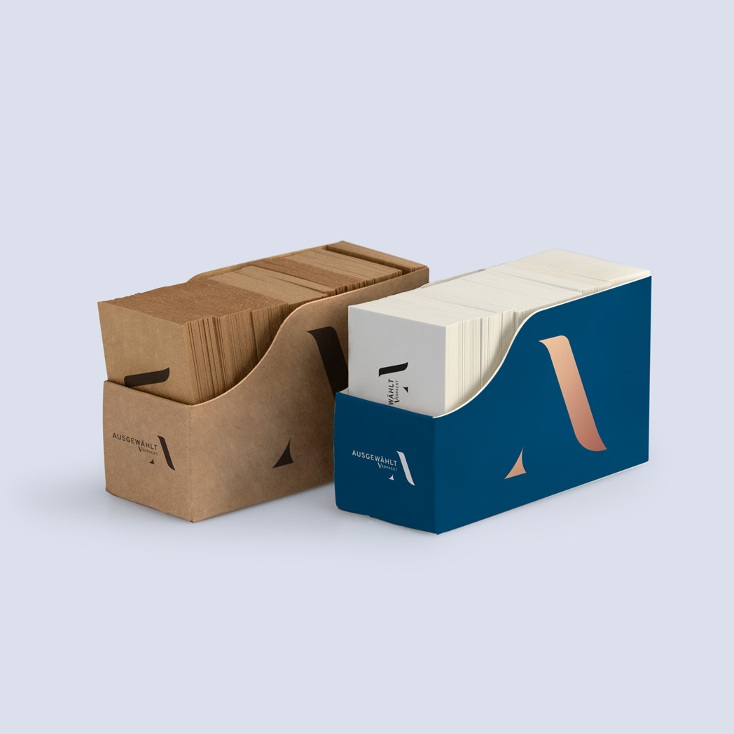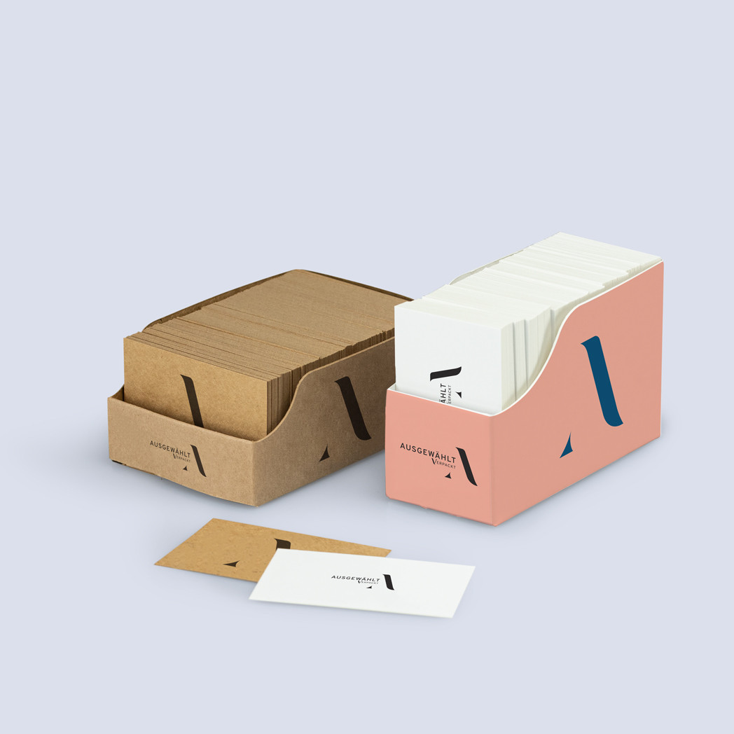 Praktischer Aufsteller in ausgewähltem Design: die schönste Aufbewahrung für Visitenkarten