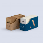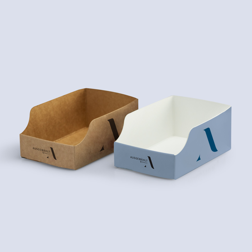In drei Materialien erhältlich: Das hellweiße Budget-Material 400 g Chromosulfatkarton für Preisbewusste. Das stabile Exklusiv-Material 450 g Chromosulfatkarton mit samtiger Oberfläche. Das nachhaltige Umwelt-Material 330 g Kraftkarton braun, das zu 100 % ungebleicht ist.