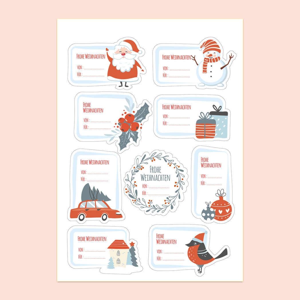 Geschenke einzupacken und vorzubereiten ist eine der schönsten, aber mitunter auch anstrengendsten Tätigkeiten im Advent. Machen Sie es sich leicht und nutzen Sie unsere schönen Geschenkaufkleber. Wir schicken Ihnen die Aufkleber auf A4 Stickerbögen mit jeweils 9 Aufklebern.