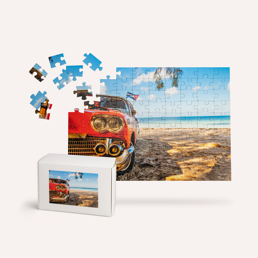 Ein individuell bedrucktes Puzzle ist nicht nur ein besonders schönes und aufmerksamkeitsstarkes, sondern auch ein umweltschonendes Geschenk: sowohl die Puzzleteile, die aus Graupappe bestehen, als auch die hochwertige Faltschachtel aus Chromosulfatkarton sind komplett plastikfrei.