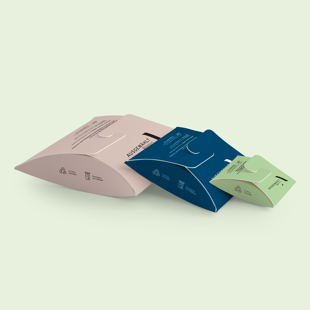 Eine feste Verpackung muss nicht immer aus Kraftpapier oder dickem Karton bestehen. Wir verwenden für unsere Kissenverpackungen hochwertiges Bilderdruckpapier, das äußerst stabil ist und mit seiner glatten, geschlossenen Oberfläche bunte Druckfarben strahlen lässt. Wer möchte, kann seine Kissenverpackung auch in unserem Exklusiv-Material, dem hochwertigen 450 g Chromosulfatkarton bestellen und individuell bedrucken lassen. Die gute Nachricht, die Sie gerne an Ihre Kunden weitergeben können: Beide Materialien sind recycelbar und lassen sich einfach über das Altpapier entsorgen. Noch umweltfreundlicher ist es natürlich, wenn Ihre Kunden die Kissenverpackungen wiederverwenden und nach dem Auspacken zuhause mit eigenen schönen Dingen, Accessoires oder zum Beispiel mit eigenem Schmuck befüllen. So bleibt auch Ihr bedrucktes Markendesign im Zuhause Ihrer Kunden präsent und wird immer wieder wahrgenommen.