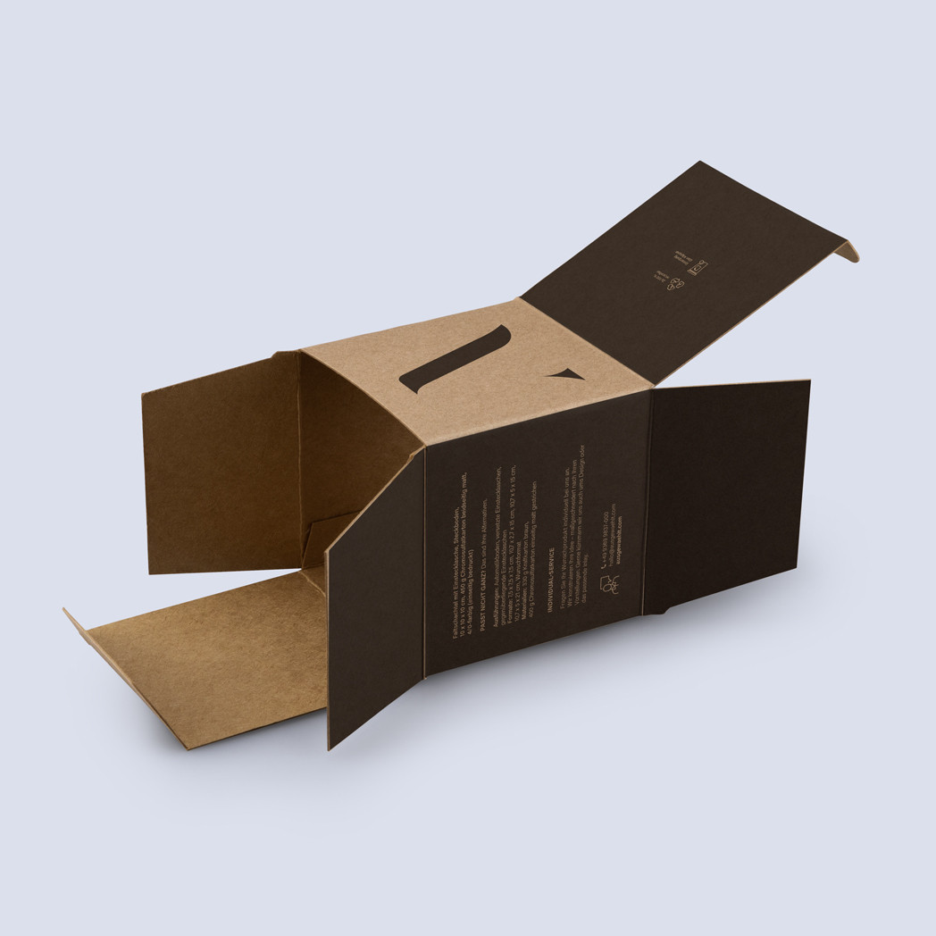 Auch beim Material der Faltschachteln haben Sie die freie Wahl, denn Sie wissen am besten, was zu Ihrer Marke und Ihrem Produkt ideal passt. Zur Verfügung stehen Ihnen bei der Gestaltung drei hochwertige Kartons: Chromocard HB – ideal für preisbewusste Kunden; Kraftkarton braun – super geeignet für Unternehmen mit einem nachhaltigen Image; und Chromosulfatkarton – perfekt zum Verpacken von Premium-Produkten.