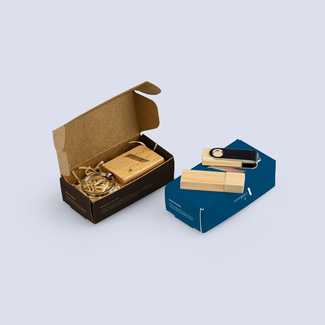 • Wir bedrucken die kleinen Pappboxen in Ihrem Wunsch-Material: Budget, Umwelt, Exklusiv