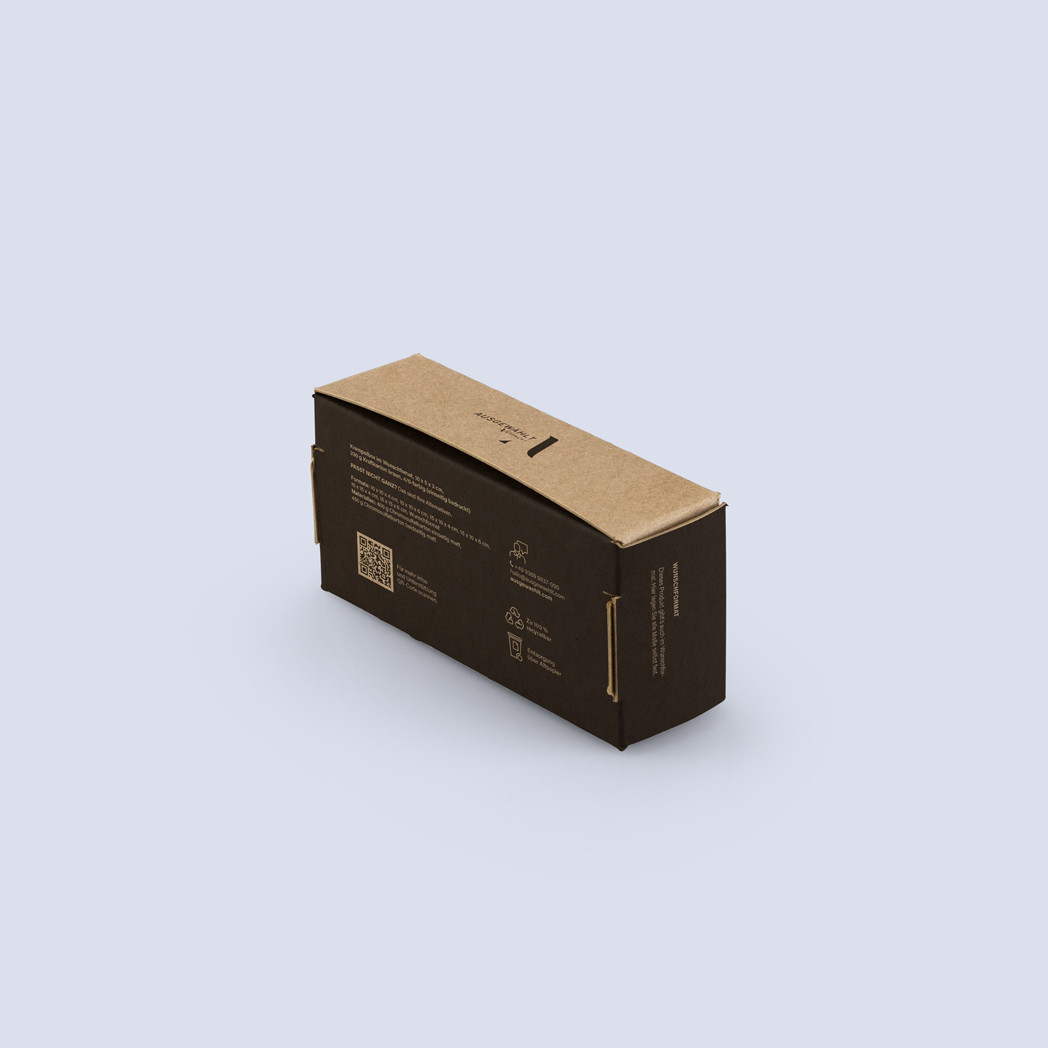 Sie wissen nicht, für welches Material Sie sich entscheiden sollen? Vielleicht helfen Ihnen unsere Vorschläge: Wählen Sie den hellweißen 400 g Chromosulfatkarton (Budget) für besonders farbenfrohe Designs. Denn das einseitig matt gestrichene Material lässt bunte Druckfarben strahlen und ist sehr stabil. Der 330 g Kraftkarton (Umwelt) in braun eignet sich besonders für umweltbewusste Kunden, nachhaltig ausgerichtete Unternehmen und Produkte oder Kampagnen, die auf Natürlichkeit setzen. Das Schachtelmaterial aus 100 % Recyclingfasern ist ungestrichen und betont Ihr nachhaltiges Image. Besonders mit Schwarz bedruckt wirken diese Krempelboxen sehr edel. Hochwertig und elegant erscheinen die Schachteln mit Klappdeckel aus 450 g Chromosulfatkarton (Exklusiv). Dieses Material ist beidseitig matt gestrichen, extrem stabil und hat eine samtige Oberfläche. Keine Sorge: Mit jedem der drei Materialien treffen Sie eine gute Wahl. Allesamt gewährleisten sie Stabilität und Schutz für Ihre Produkte und erfüllen mithilfe des von Ihnen individuell erstellten Designs gleichzeitig einen bedeutenden Branding-Zweck.