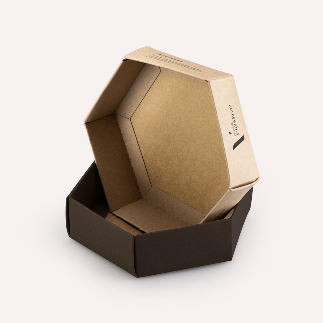 Nachhaltige Stülpschachteln aus Pappe in origineller Hexagon Form