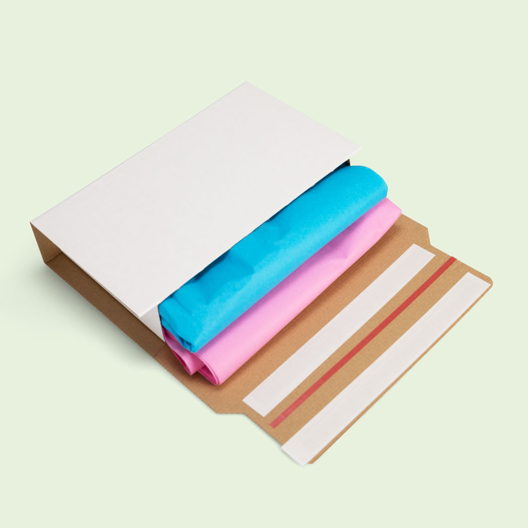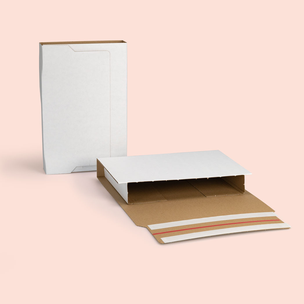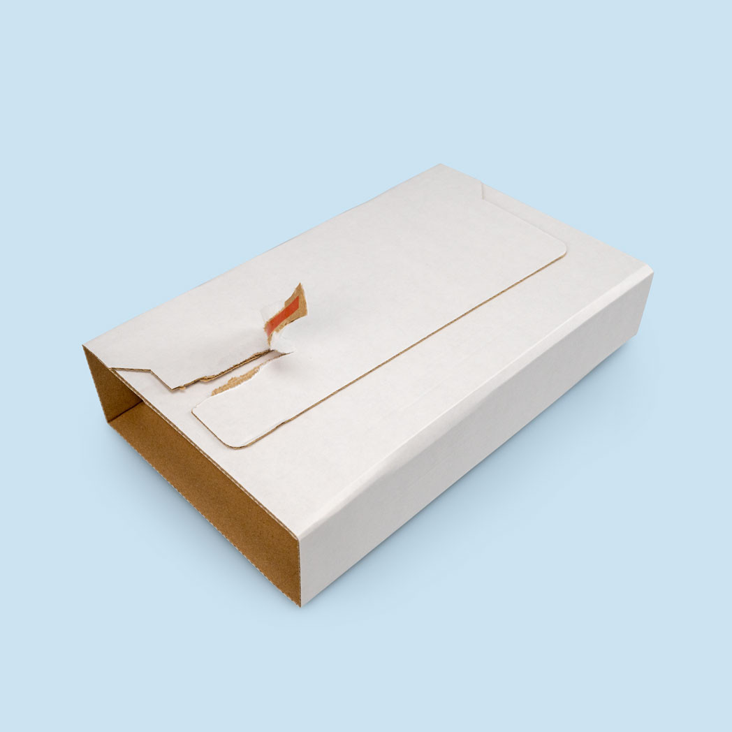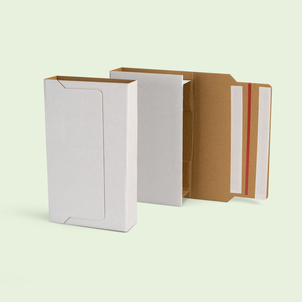 Diese Universal Verpackung aus E-Welle bestellen Sie bei AUSGEWÄHLT in drei verschiedenen Größen. Neben der Größe S (24,3 x 16,3 x 6,8 cm), führend wir die weiße Buchverpackung auch in 27,8 x 20,3 x 6,8 cm (M) und 30,8 x 24,8 x 6,8 cm (L). Das besondere Plus unserer Buchverpackung: Sie ist dank variabler Packhöhe (1 bis 6,8 cm) superflexibel. Somit können Sie schlanke Taschenbücher genauso gut wie dicke Kataloge verschicken. Auch ein Kombiversand mit Produkten verschiedener Größen ist durch eine variable Füllhöhe problemlos möglich. Falls es doch mal mehr werden sollte, können Sie bei uns auch größere Versandkartons bestellen. Die flachliegenden Wickelverpackungen lassen sich einfach aufrichten und befüllen. Der praktische, zweifache Selbstklebeverschluss hilft sowohl Ihnen beim sicheren Verschließen des Kartons als auch Ihren Kunden, falls diese ihre Ware als Retoure zurückschicken möchten. Wickeln Sie den Karton eng um die Sendung und verschließen Sie ihn mit dem ersten Selbstklebeverschluss. So vermeiden Sie Hohlräume und können auf zusätzliches Füllmaterial verzichten. Der dafür vorgesehene Verschlussstreifen entwickelt optimale Klebekraft durch festes Andrücken. Der Empfänger öffnet die Verpackung mühelos und bequem mithilfe des Aufreißfadens. Möchte er sein Paket anschließend zurückschicken, nutzt er dafür den zweiten Klebeverschluss.