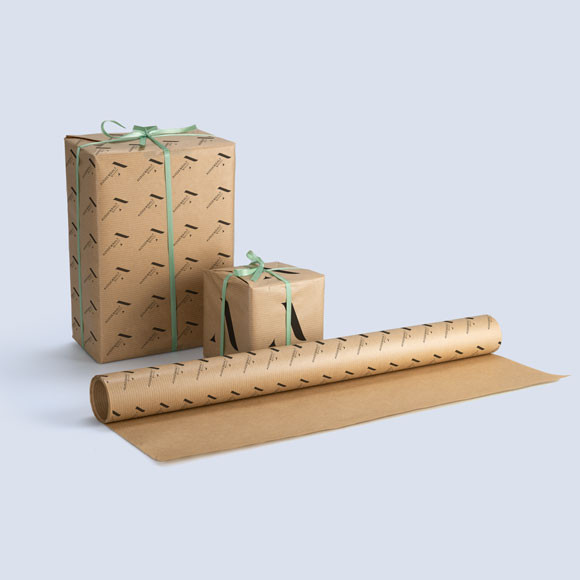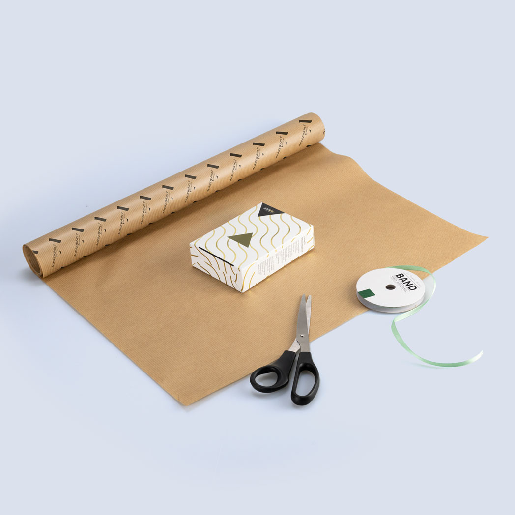 Wer ein Geschenk ganz unvergleichlich verpacken möchte, dem haben wir bislang immer unsere individuell bedruckbaren Geschenkverpackungen ans Herz gelegt: Verpackung bedrucken, öffnen, Geschenk hineingeben, fertig. Nun bekommen unsere schönen Geschenkschachteln Konkurrenz: Neben unserem individuell bedruckbaren Geschenkpapier eignet sich auch unser Packpapier wunderbar, um Geschenke natürlich und schön zu verpacken. Die Unterschiede liegen klar auf der Hand (bzw. in der Hand): Während das Geschenkpapier mit weißem Untergrund etwas fester ist (70 g starkes Geschenkpapier), ist das Packpapier mit 50 g Stärke etwas dünner, in natürlichem Braunton gehalten und mit Wasserzeichen versehen. Durch die feinen Streifen wirkt es fast ein wenig gerippt und kommt so nach natürlicher und hochwertiger rüber. Je nachdem, was Sie verpacken möchten, suchen Sie sich einfach das ideale Papier aus und versehen es mit Ihrem Logo.