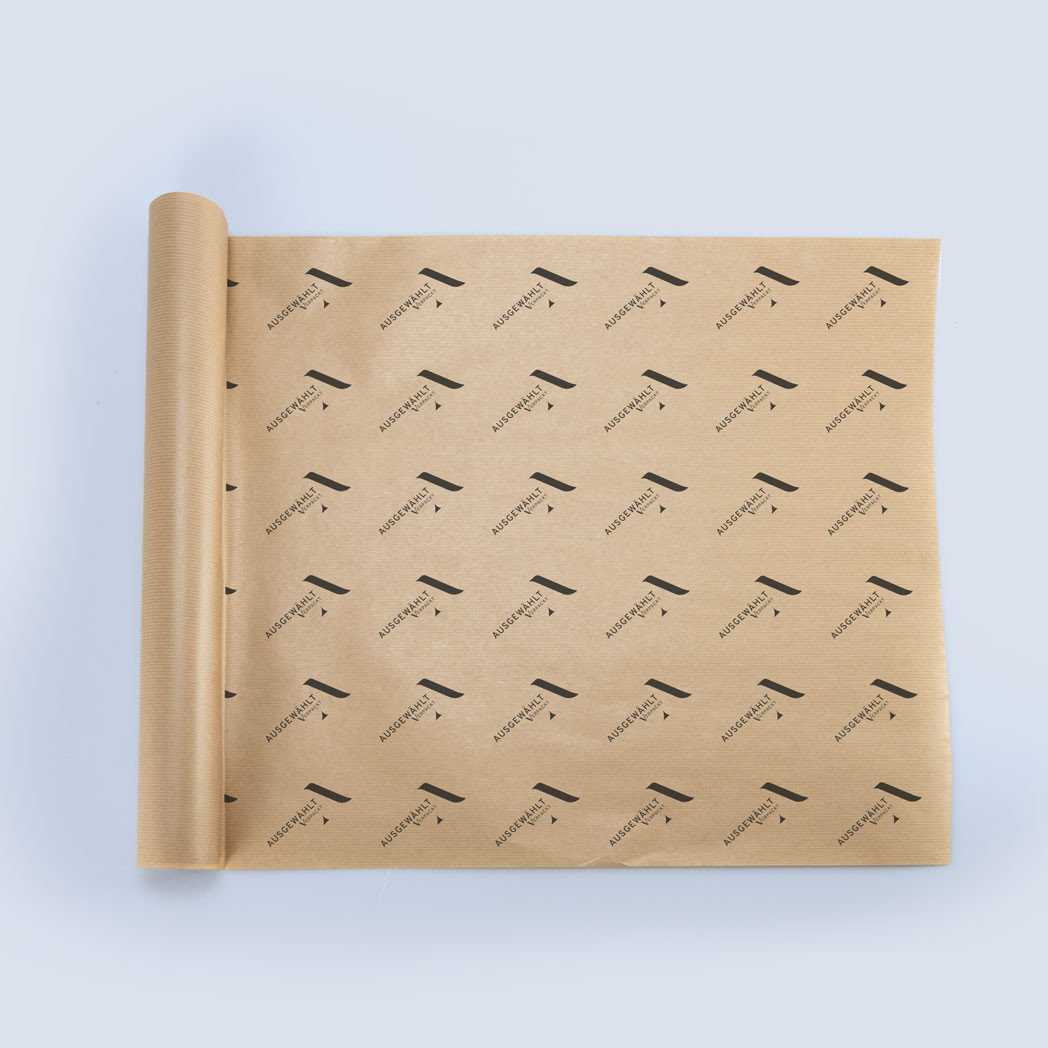 Wir platzieren Ihr Logo in der gewünschten Größe auf unserem natürlichen Einpackpapier. Das Schutzpapier ist oft der erste Berührungspunkt Ihrer Kunden mit Ihren Produkten, Ihrer Marke und Ihrem Unternehmen. Es wäre wirklich schade, diesen Moment ungenutzt zu lassen. Mit einem individuell bedruckten Papier erhöhen Sie automatisch den Wiedererkennungswert Ihrer Marke. Das unterstützt die Kundenbindung und transportiert Ihre Botschaft auf den ersten Blick. Ob für Wäscherei-Produkte, in Boutiquen, Lebensmittelgeschäften, Deko- oder Blumen-Läden, mit unserem Einschlagpapier verlassen Ihre Produkte stets bestens verpackt Ihr Geschäft bzw. Ihren Online-Shop.